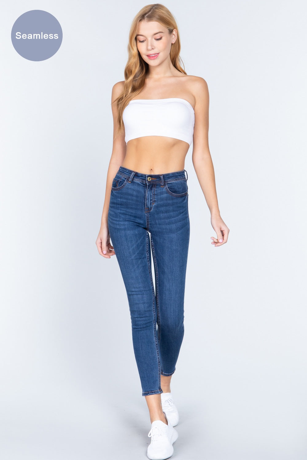 Women's Inside Bra-cup Seamless Solid Bandeau Strapless Bra Top