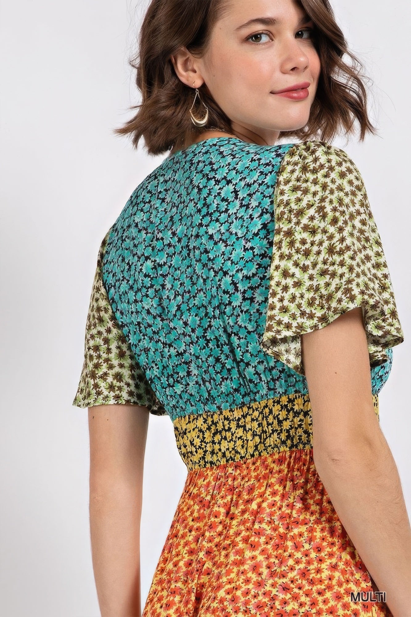 Ditsy floral color block v-neck split button up maxi dress