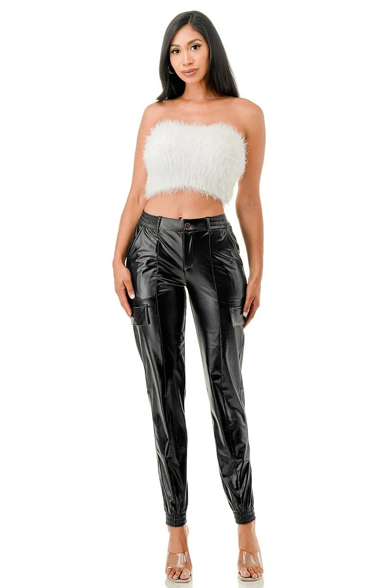 Experience the perfect blend of comfort and style with our Lined Fleece Faux Leather Cargo Pants. The combination of lined fleece, faux leather accents, and cargo-style details makes these pants a standout addition to your wardrobe.