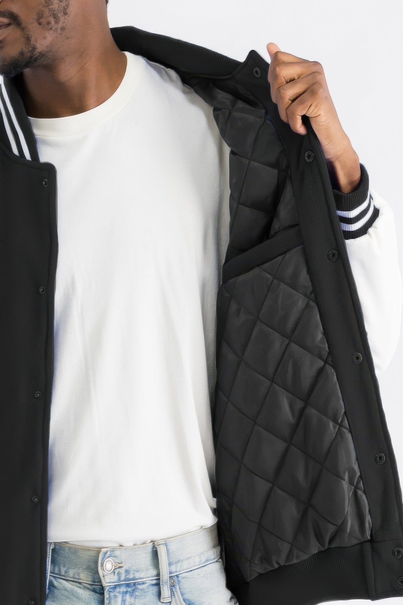 Mens Premium Classic Snap Button Vintage Baseball Letterman Varsity Jacket